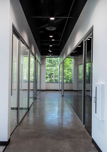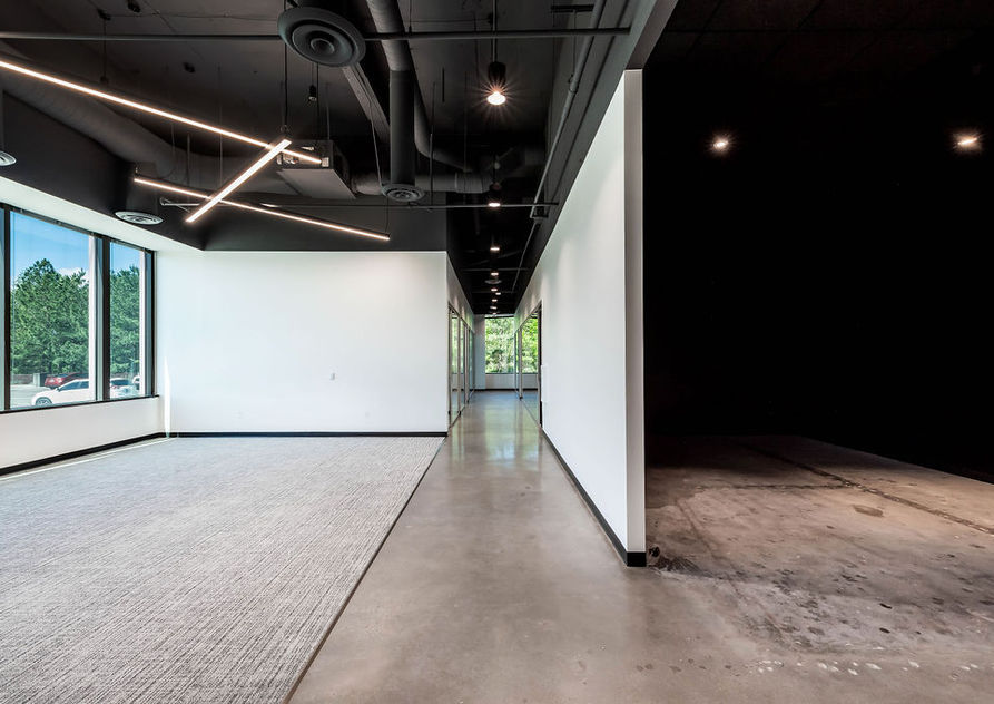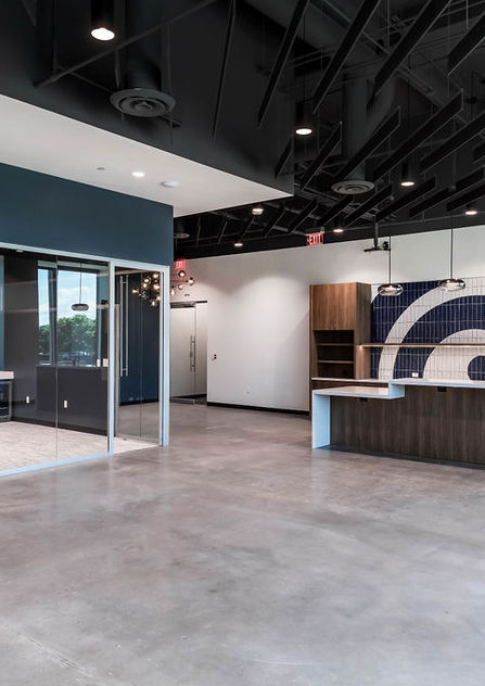 The space features a custom millwork breakroom, private offices, a golf simulator, rock climbing wall, and massage room - all tied together with polished concrete floors, premium finishes, and a 20-foot deck height that creates and open, inviting environment for both work and client engagement.